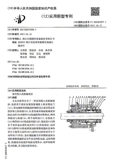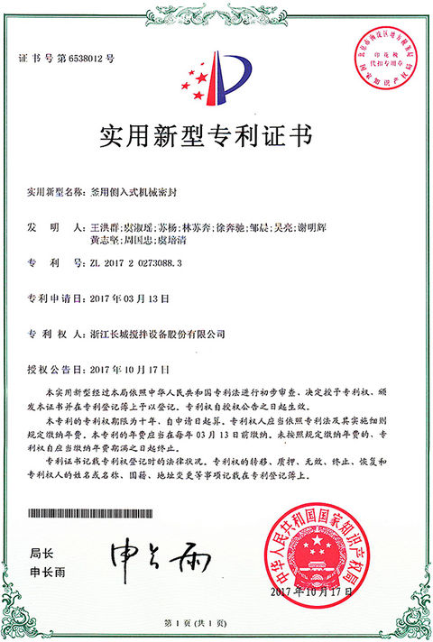 熱烈祝賀我司“釜用側(cè)入式機(jī)械密封”獲國(guó)家實(shí)用新型專利