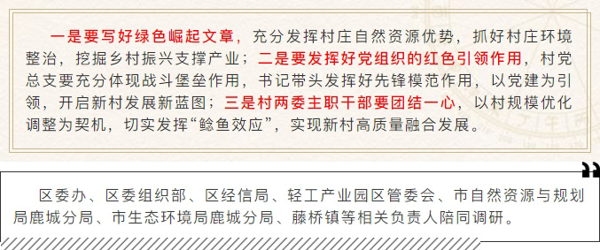8月7日,區(qū)委書記姜景峰一行赴藤橋鎮(zhèn)開展“三服務(wù)”活動(dòng)及河長(zhǎng)制督查、村規(guī)模優(yōu)化調(diào)整工作調(diào)研。