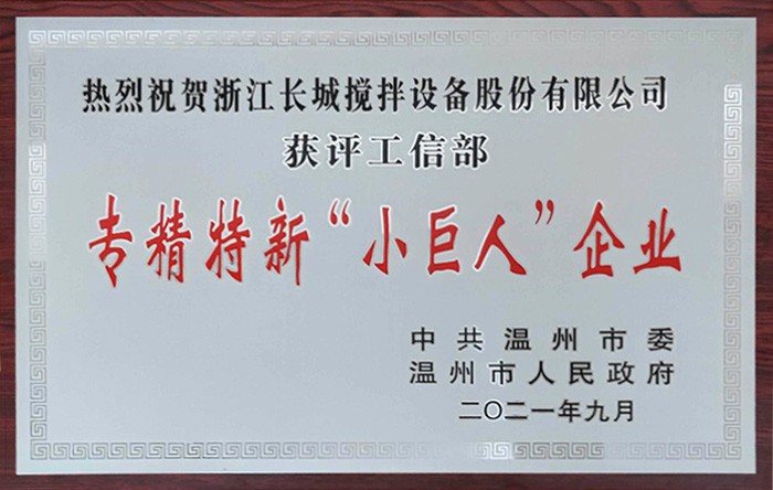 9月26日,公司董事長虞培清先生受邀出席了“溫州市新一輪制造業(yè)‘騰籠換鳥、鳳凰涅槃’攻堅行動推進大會”,汪馳副市長對溫州市31家入選工信部第三批專精特新“小巨人”企業(yè)進行了頒獎,長城攪拌榜上有名。